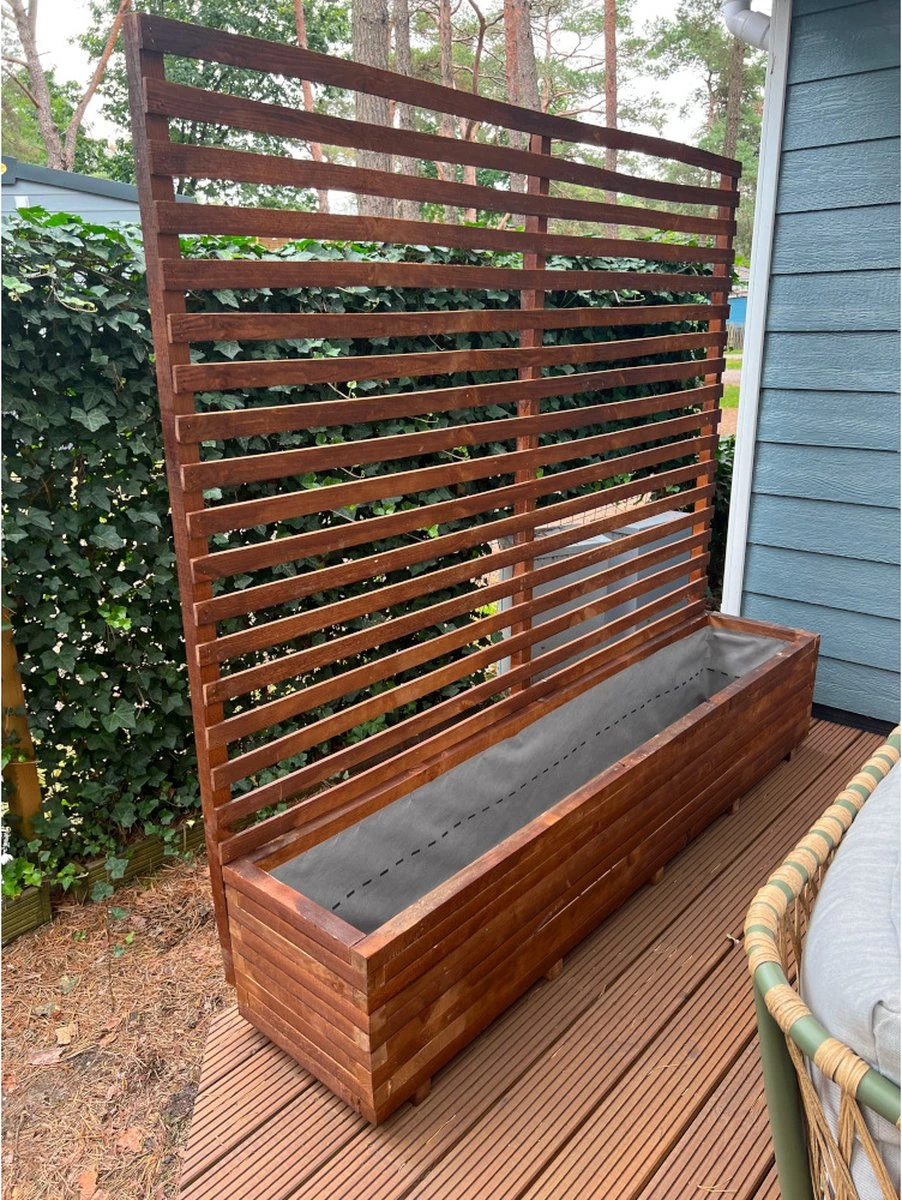 Grote bloembakken, gemaakt van vierkante hout 40 mm x 40 mm, zeer stevig, genageld, geïmpregneerd en geschilderd.