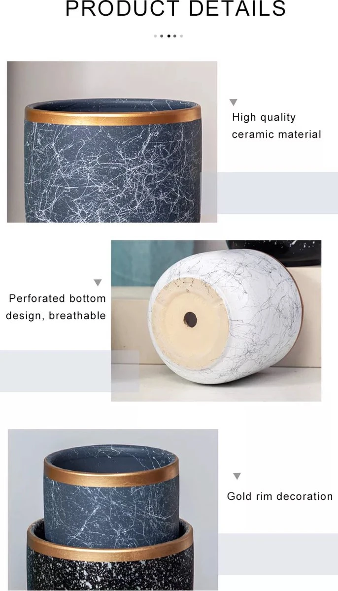 Het potten zijn vervaardigd van keramiek, wat een duurzaam product is en op esthertisch gebied hoge kwaliteiten bezit. Zo zijn ze kleurvast, vrij van schadelijke stoffen en belasten het milieu in mindere mate zoals bijvoorbeeld kunststof. Bovendien Gouden rand