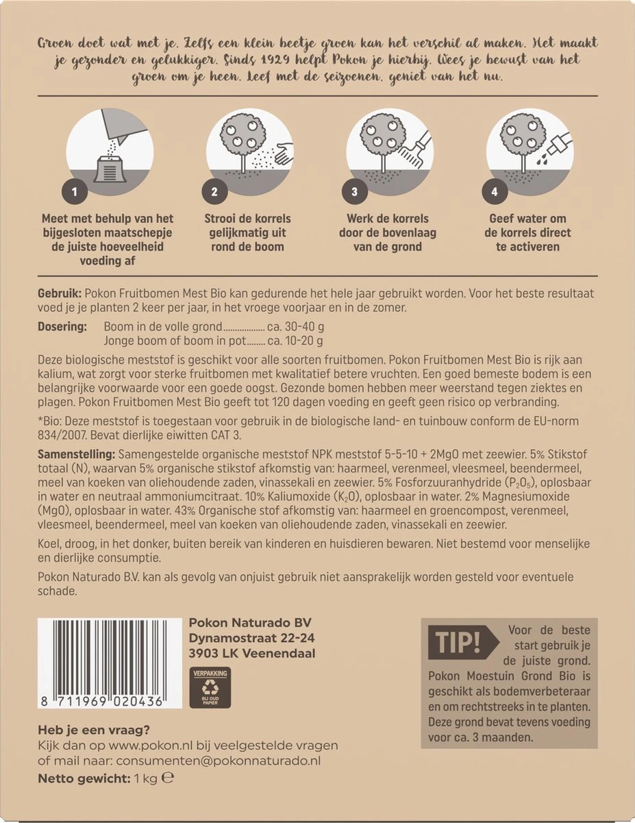 Met Bio Mest voor Fruitbomen van Pokon, ben je verzekerd van gezonde en sterke bomen!
