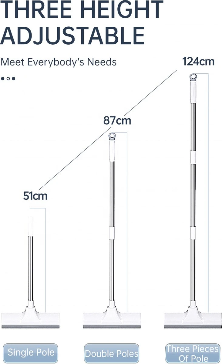 ▲ Extra lange handgreep, multifunctioneel combinatieontwerp: zeer zacht, zonder krassen op de vloer of tegels.